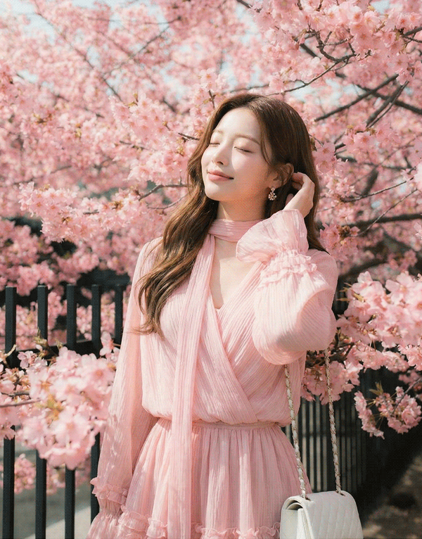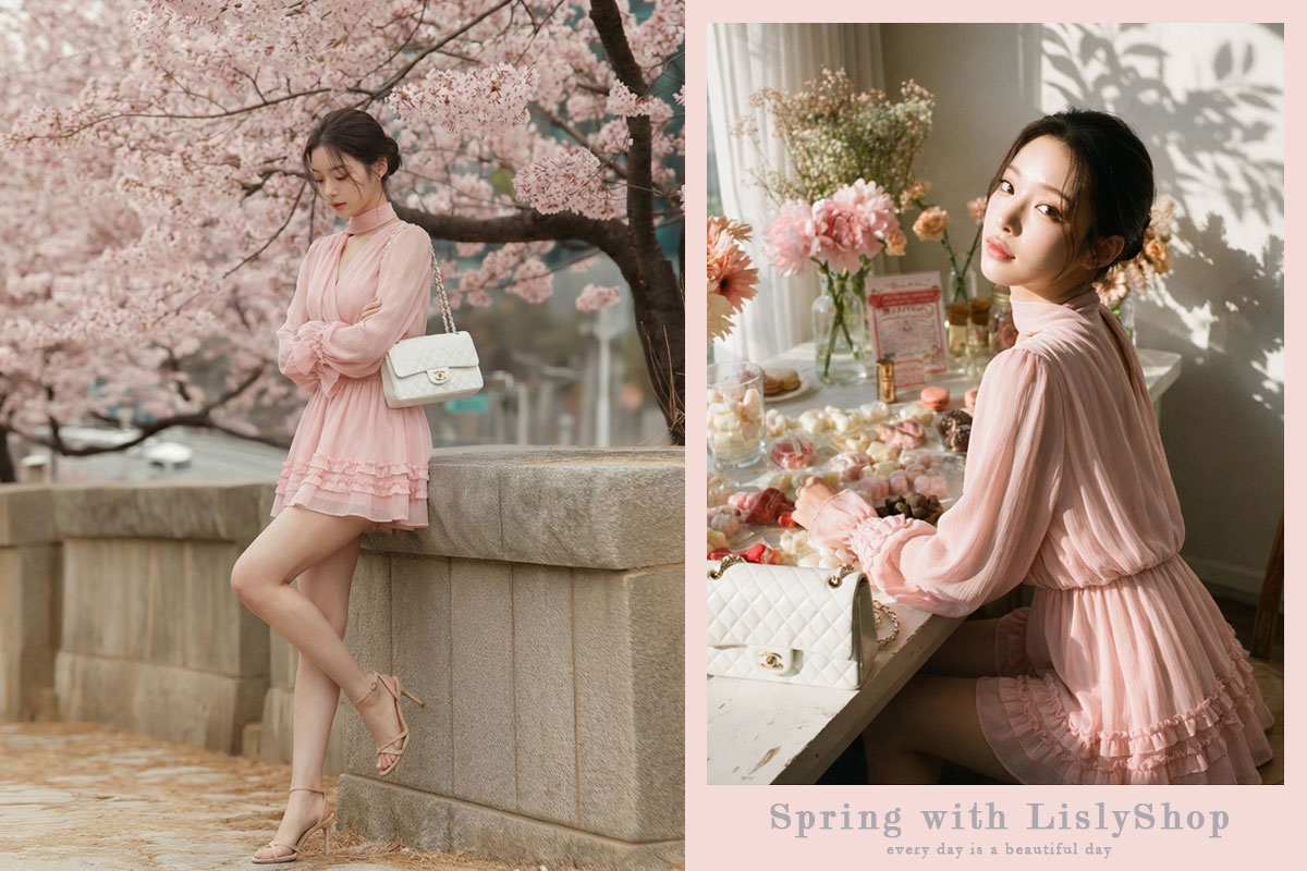 蜜桃粉浪漫荷葉波紋雪紡洋裝 NT$1280