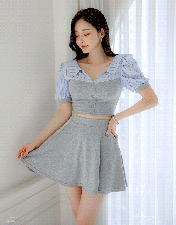 學院條紋拼接彈力棉質SET套裝 NT$1280 -
