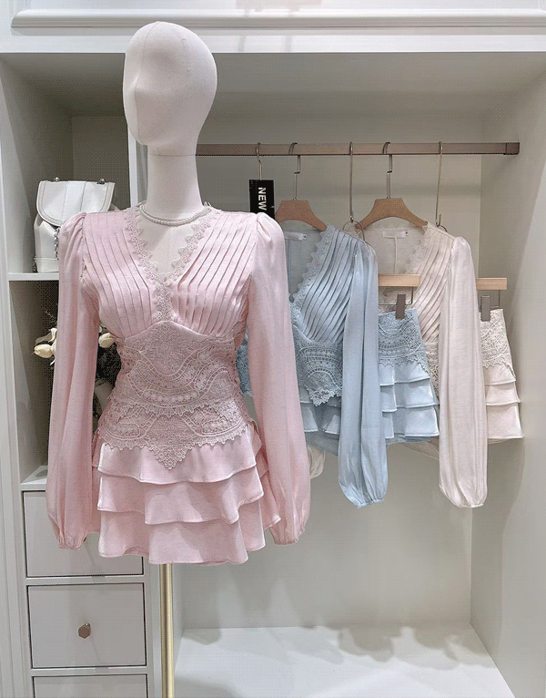 法式荷葉蕾絲喇叭袖罩衫 NT$1280 -