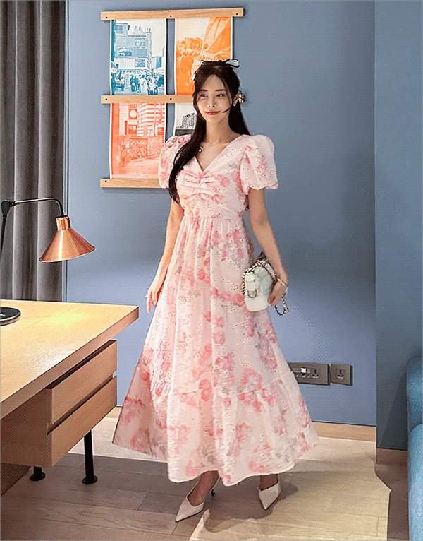 花朵刺繡公主袖洋裝 NT$1680 -