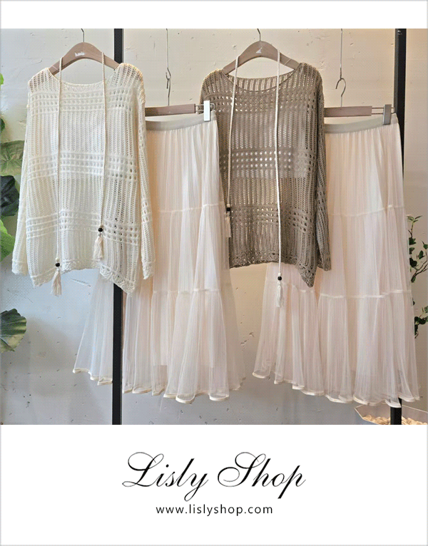 波西米亞鏤空針織上衣+蛋糕紗裙+腰帶SET NT$1480