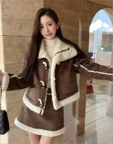 小安清單/麂皮內鋪毛牛角扣外套+短裙SET