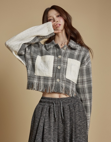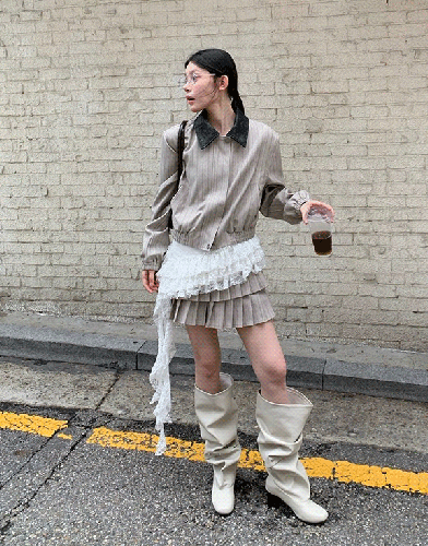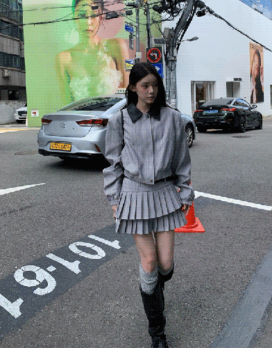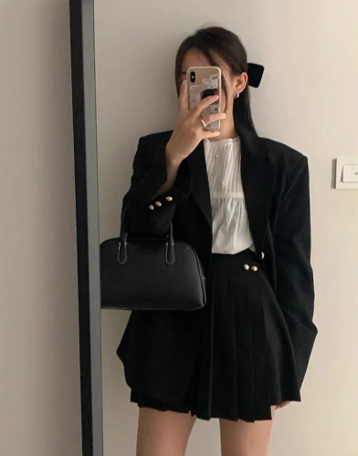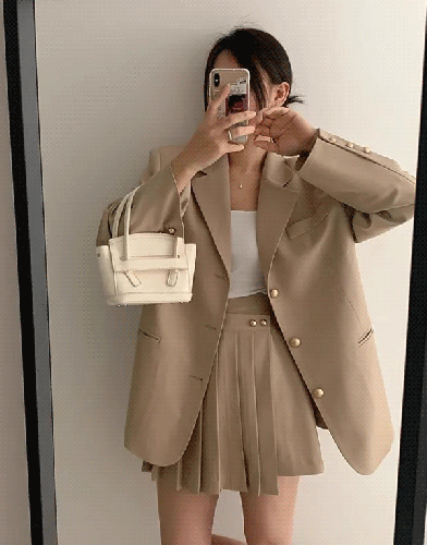小安清單/格紋夾克外套+百褶短裙+腰帶SET