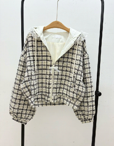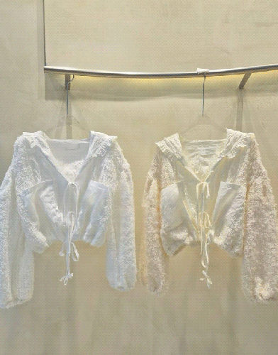 羽毛蓬袖蝴蝶結小荷葉連帽上衣