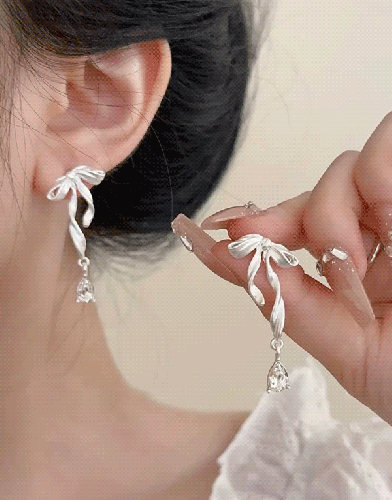 芭蕾立體蝴蝶結水鑽耳環