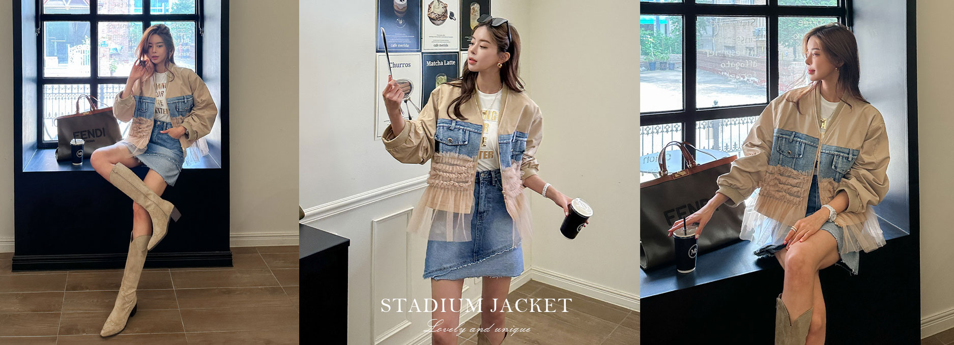牛仔拼接網紗荷葉棒球外套 NT$1680