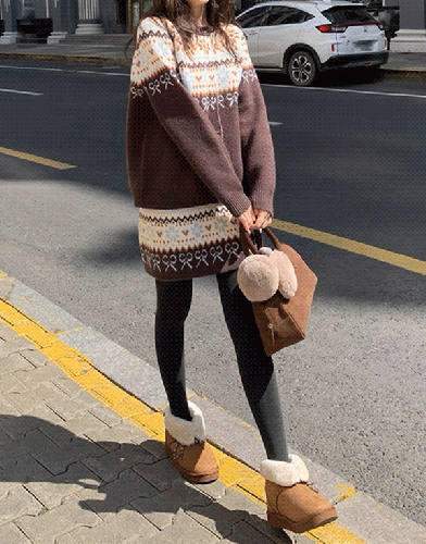 北歐蝴蝶結圖騰針織上衣外套+短裙SET