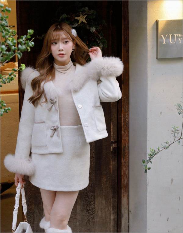 狐狸毛翻領內鋪鴨絨羊毛外套+短裙SET NT.$3680 -