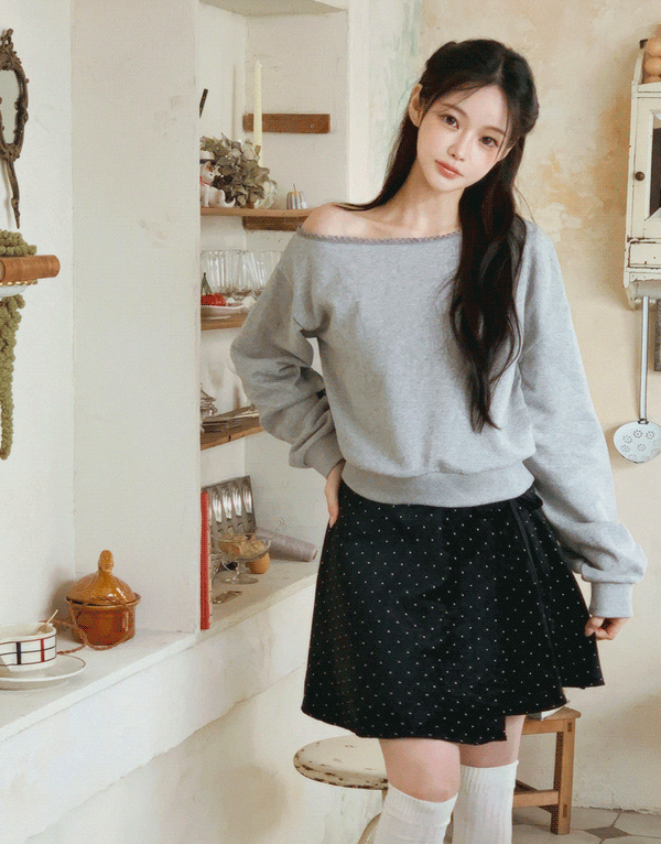 天鵝絨點點側綁帶圓裙 NT.$1280 -