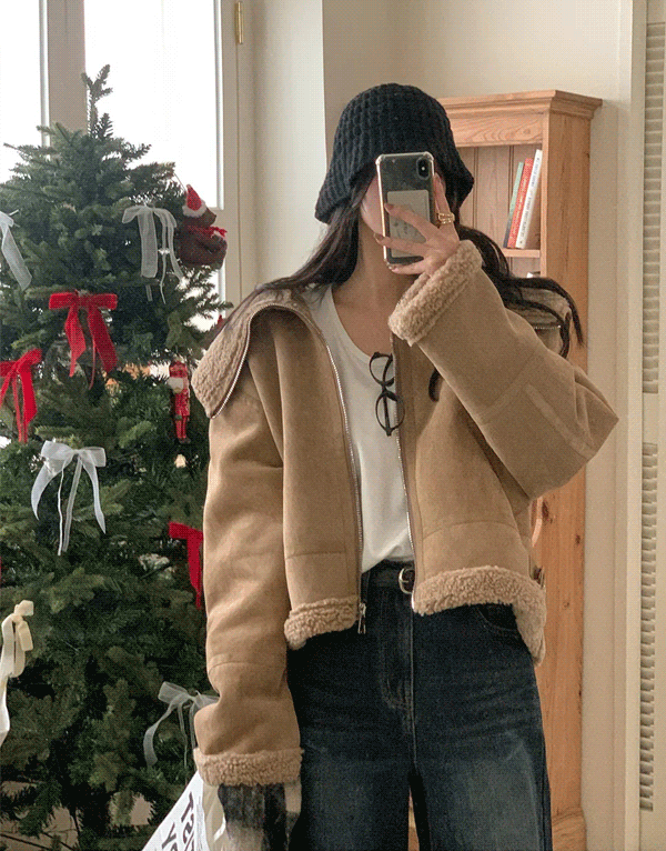 羊羔毛大翻領麂皮外套 NT.$2080 -