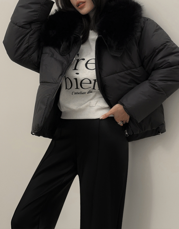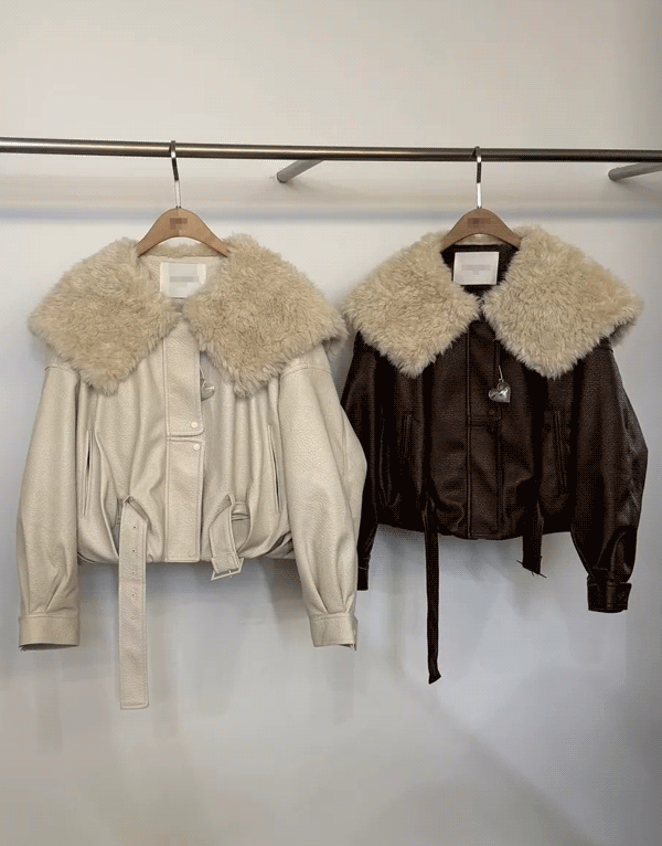 可愛毛毛大翻領皮革鴨絨外套 NT.$3980 -
