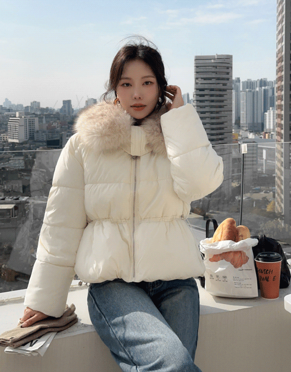 人造皮草翻領腰抽繩鋪棉外套 NT.$1680 -