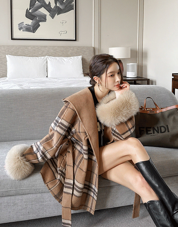 雙面兩穿袖口狐狸毛羊毛大衣外套 NT.$5280 -