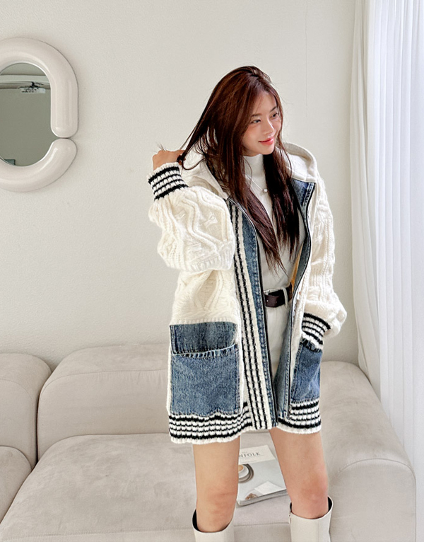 厚針織拼接牛仔連帽外套 NT.$1580 -