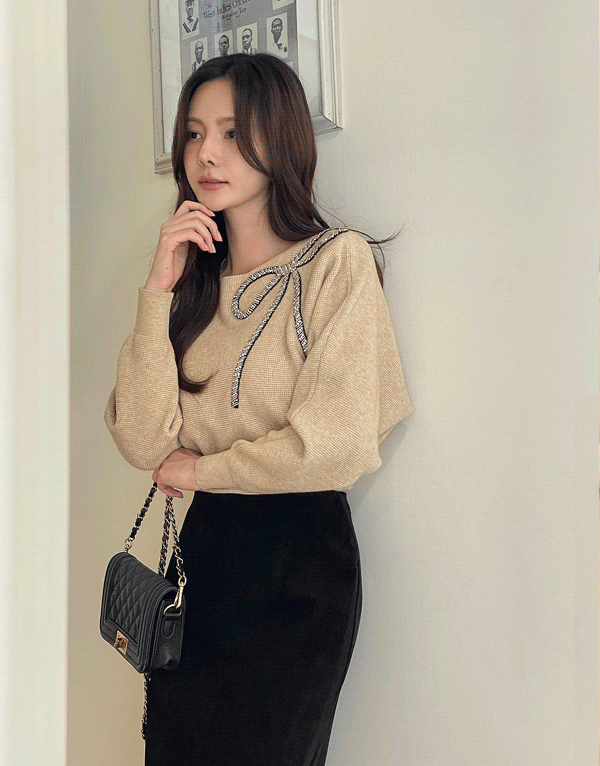 質感蝴蝶結串珠連袖針織上衣 NT.$1380 -