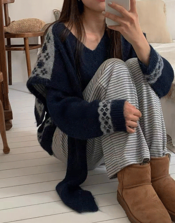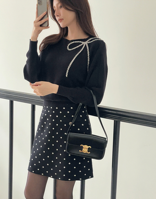 北歐蝴蝶結圖騰針織上衣外套+短裙SET NT.$1380 -