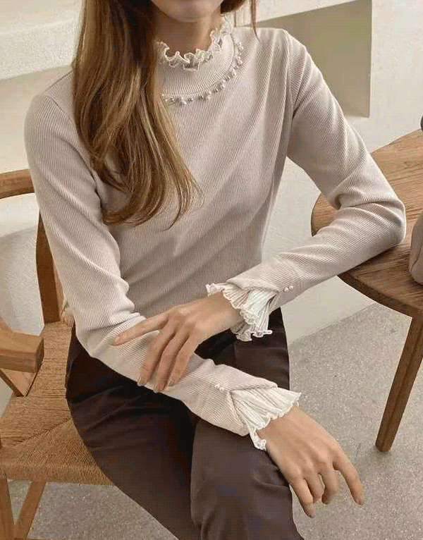 小荷葉立領釘珠百搭上衣 NT.$980 -