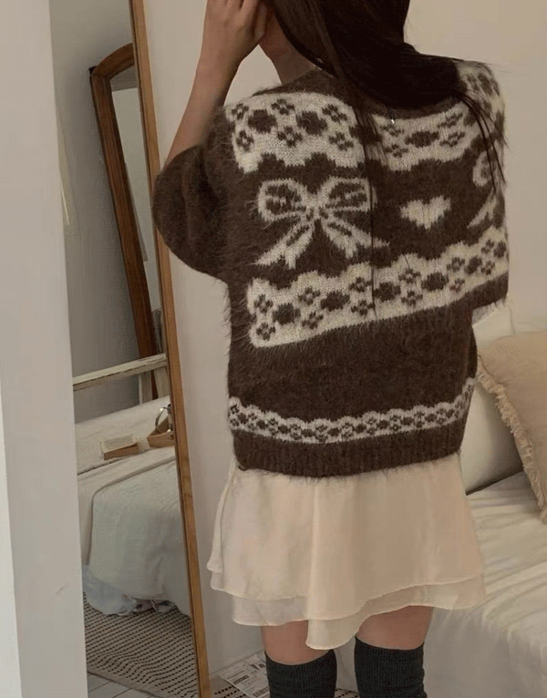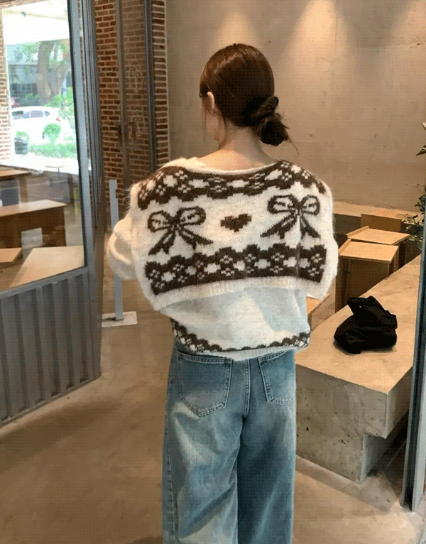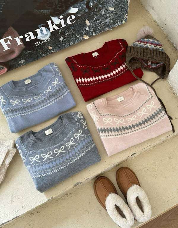 甜美蝴蝶結圖騰針織毛衣 NT.$1180 -