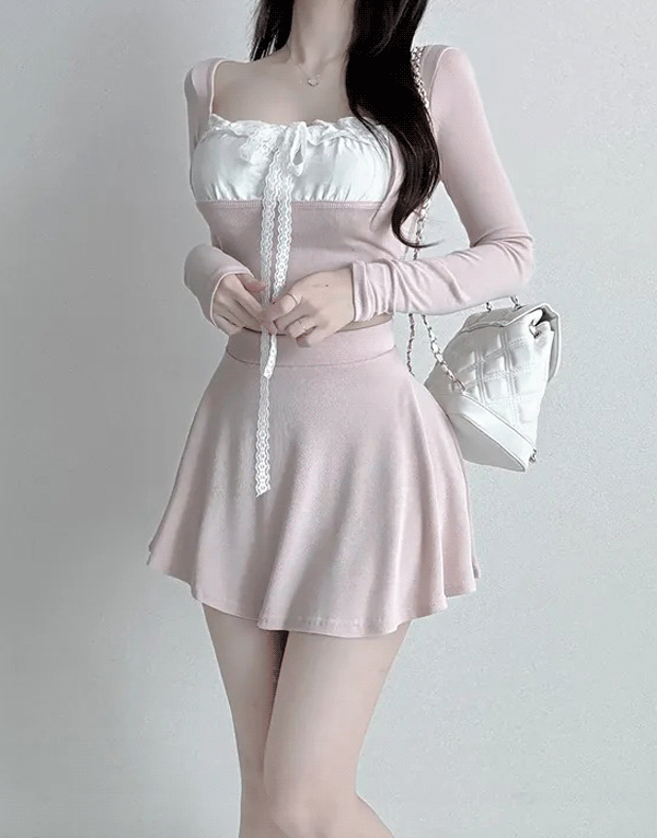 蕾絲緞帶方領彈性SET套裝 NT.$1280 -