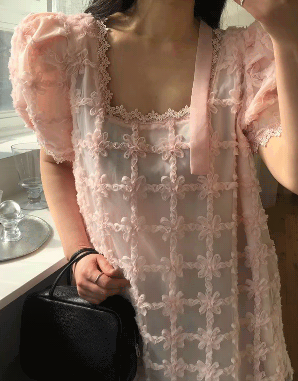 細緻花磚蕾絲公主袖洋裝 NT.$2480 -