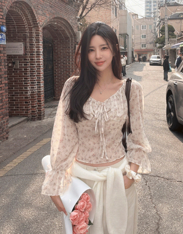 小安清單/碎花雪紡蝴蝶結上衣 NT.$1280 -