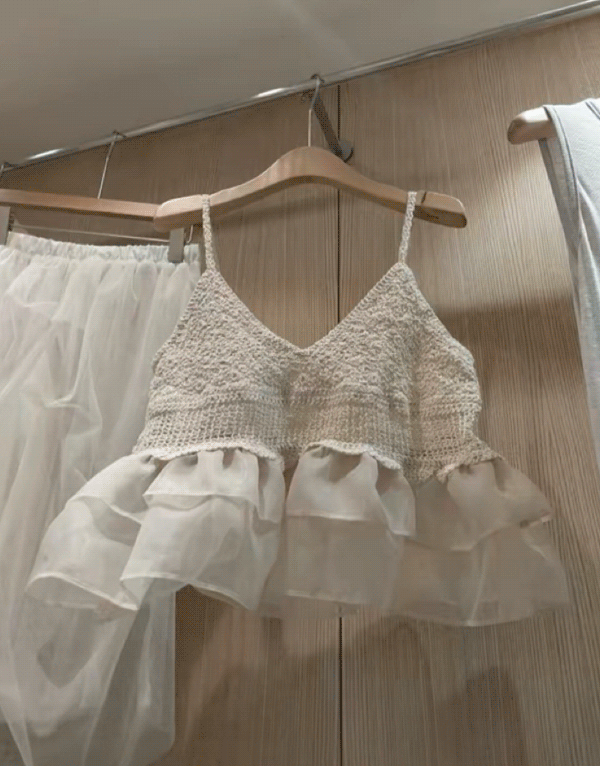 針織細肩帶蓬蓬下擺上衣 NT.$1280 -