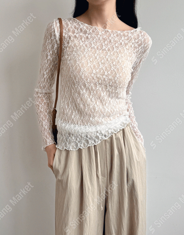 銀色點點透肌蕾絲內搭上衣 NT.$1080 -