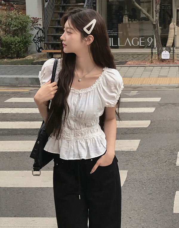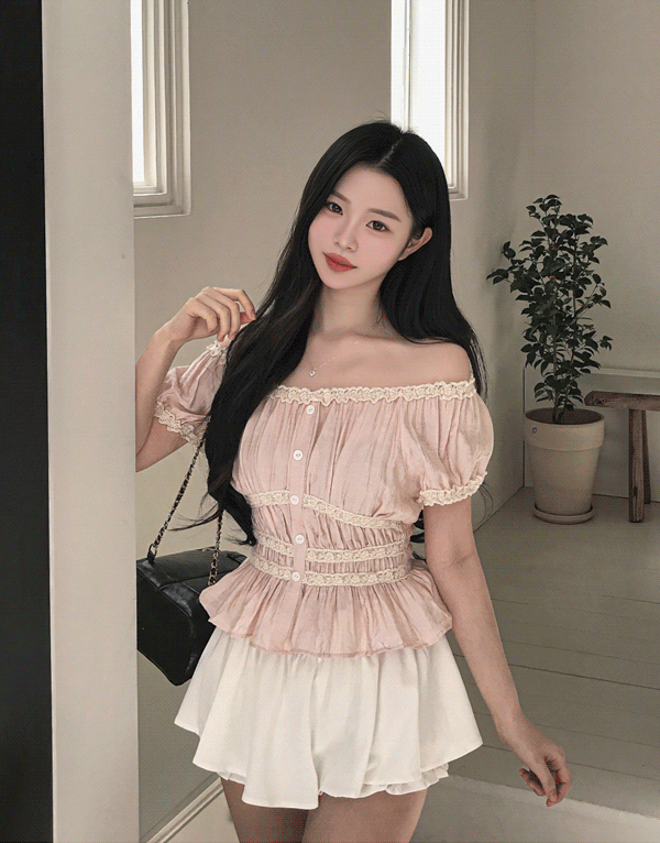 法式荷葉蕾絲喇叭袖罩衫 NT.$1280 -