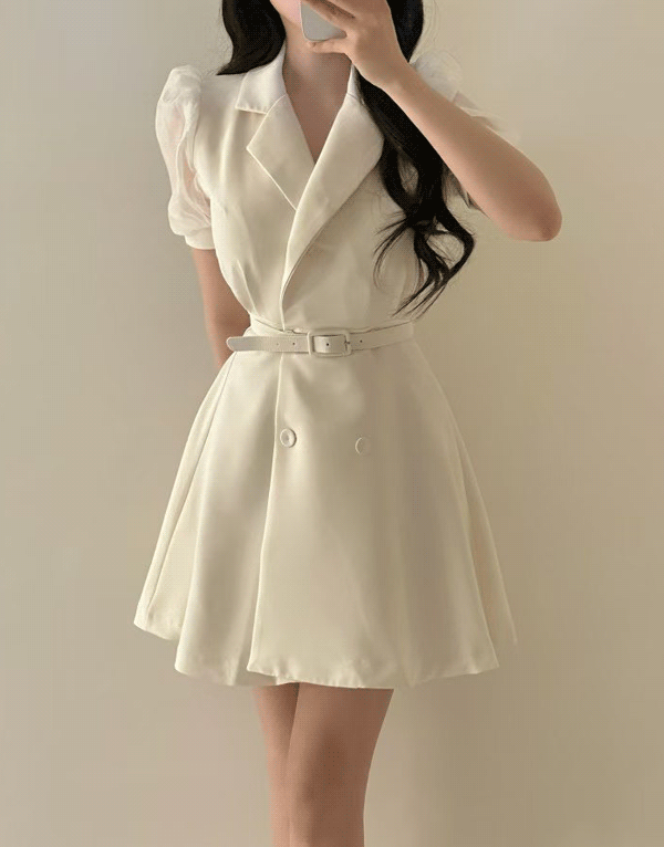 雪紡蓬袖西裝領雙排釦洋裝 NT.$1680